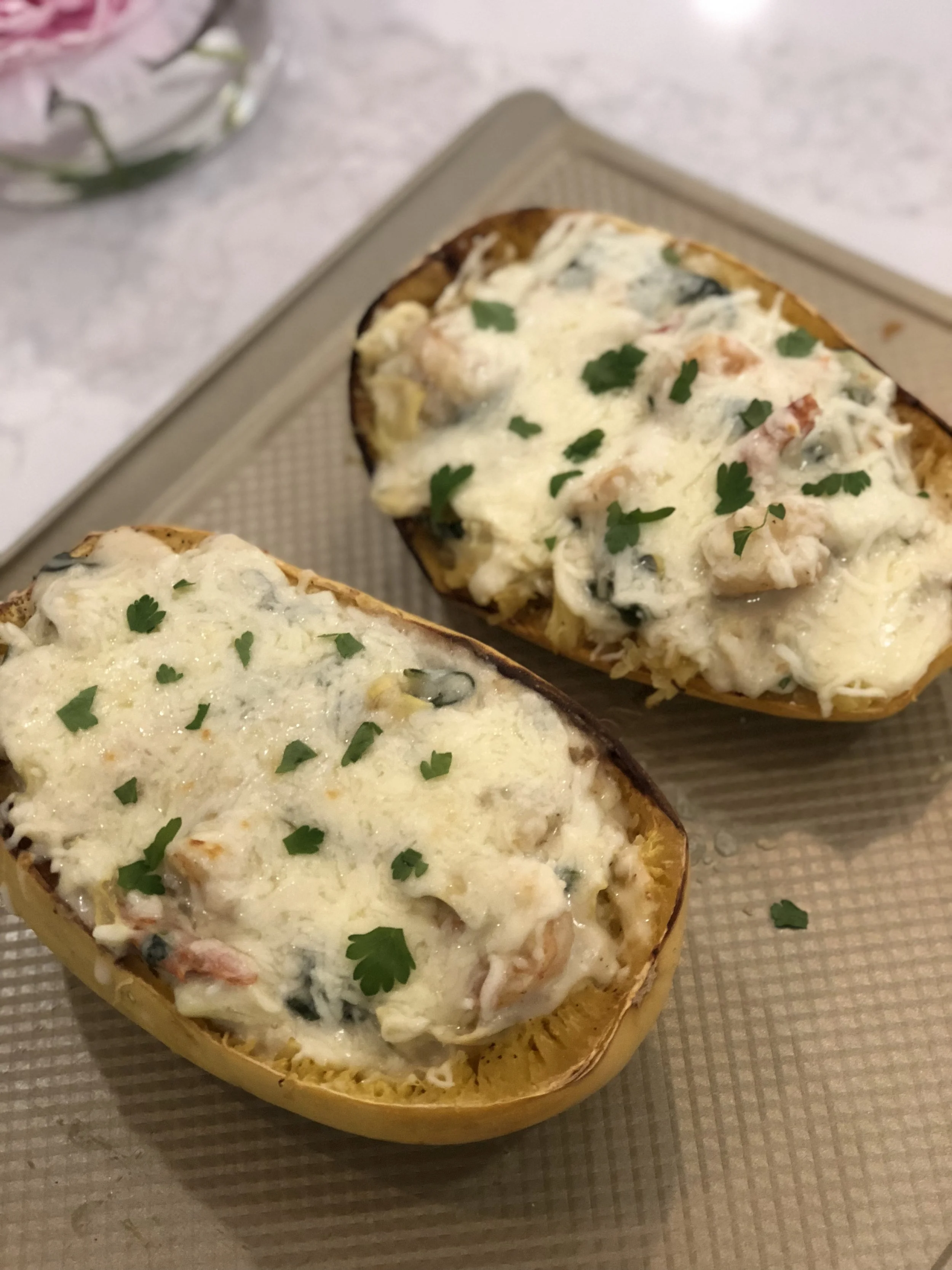 Shrimp & Spinach Artichoke Spaghetti Squash