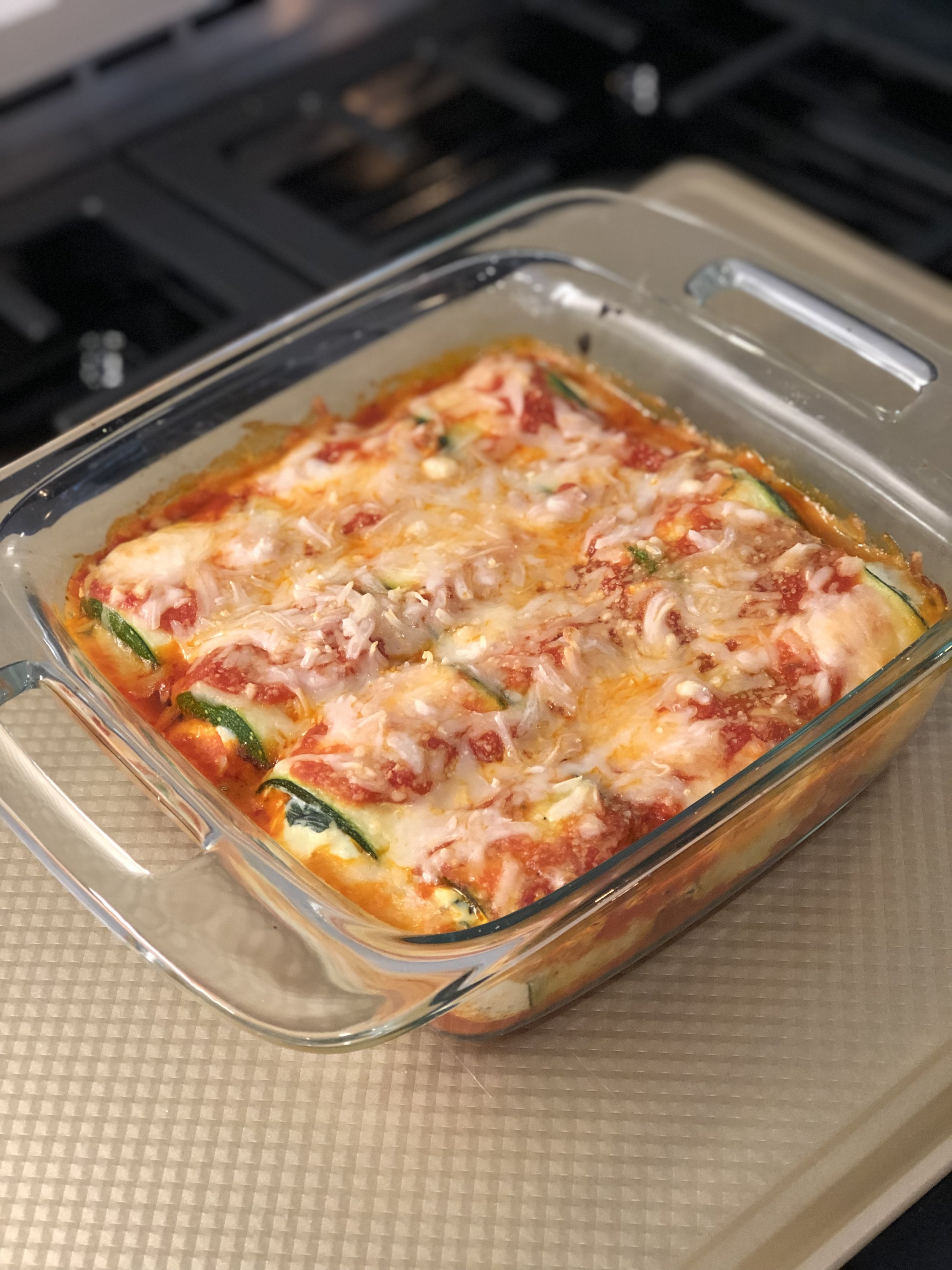 With summer here that means summer squash is everywhere! Zucchini, yellow squash, etc. are all in abundance at the farmers market, grocery stores, and maybe even your backyard. One of my favorite ways to cook is through using in season ingredients because they are fresh and also budget friendly! This easy Zucchini Rollatini has become a staple in our house and it can easily be modified with whatever you have on hand - yellow squash, eggplant, even large carrots! Your kids will also love it too and you will get your pasta fix without feeling like you weigh 20 more pounds after indulging.