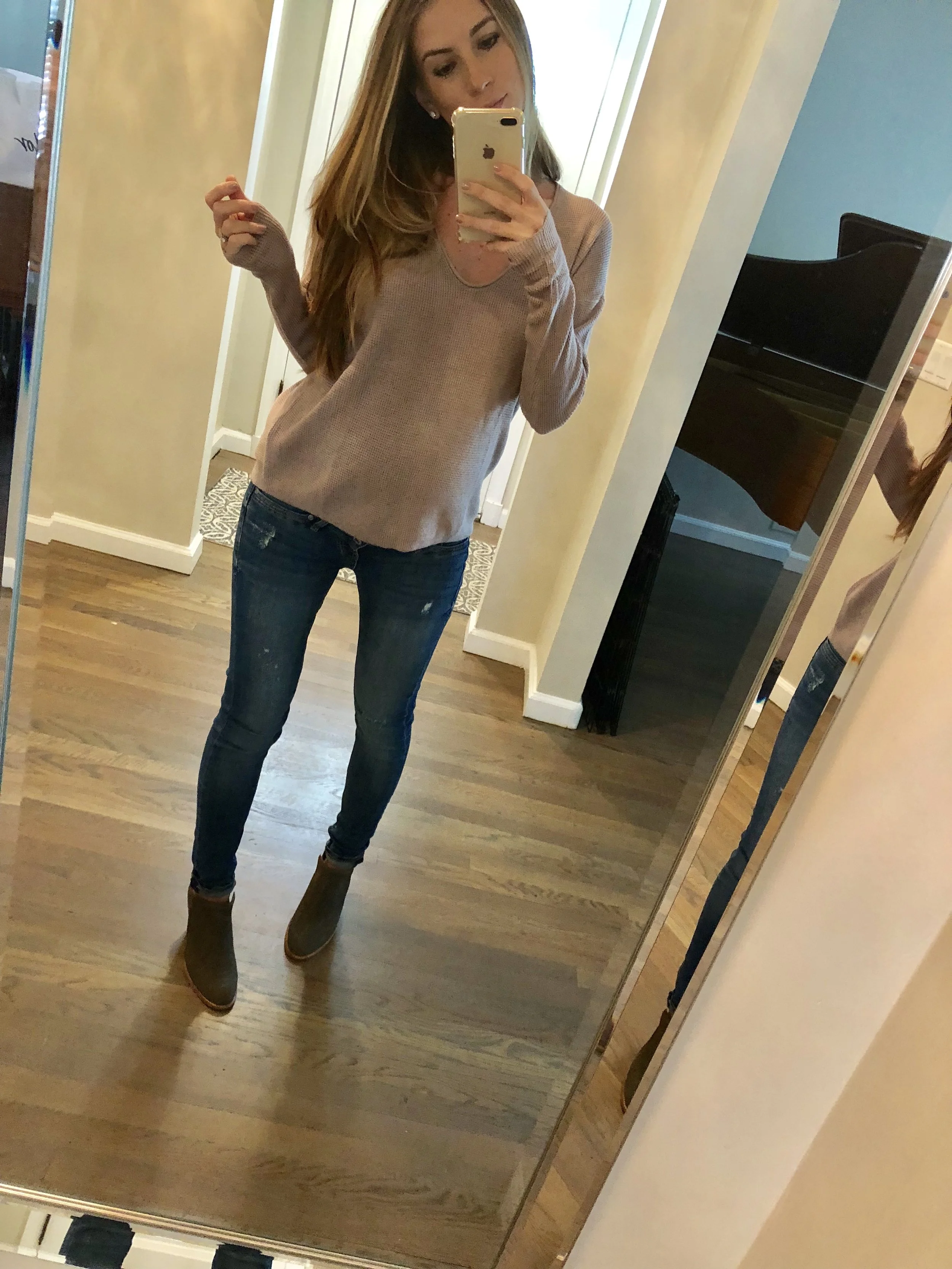 This Henley Thermal Top (UPDATE - SOLD OUT will let you know when/if back in stock) is one of the softest shirts ever.  Here I'm wearing it in Oatmeal, size XS and I also featured it in the picture below in a light purple color.  It's perfect paired with any jean, these are maternity (not from the sale), but here are some of my favorite JEANS from the sale at a really great price (only $59.90)!